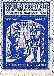 Stamp created by the Centre de défense des objecteurs de conscience (around 1936).