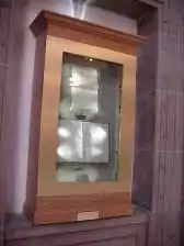 The summer heat often caused the delegation to move outdoors and work beneath the shade of a giant elm tree that would later be memorialized as the Constitution Elm. (A portion of the trunk is still preserved.)[22] The delegates completed their work on the constitution in nineteen days, adjourning on June 29, 1816. The total cost of the convention was $3,076.21, which included compensating the delegates and their assistants for each day they attended the convention, as well as printing costs for the final version of the document and the acquisition of benches, tables, books, and stationery for the delegates.[16][23]