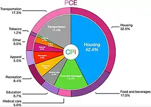 Because of some shortcomings of the CPI, notably that it uses static expenditure weighting and it does not account for the substitution effect, the PCEPI is an alternative price index used by the Federal Reserve, among others, to measure inflation.[23] From January 1959 through July 2018, inflation measured by the PCEPI has averaged 3.3%, while it has averaged 3.8% using CPI.[24]