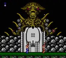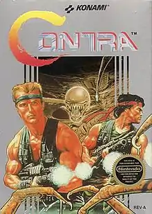 Contra[lower-alpha 1] is a run and gun video game developed and published by Konami, originally developed as a coin-operated arcade video game in 1986[5][6] and released on February 20, 1987.[7][8] A home version was released for the Nintendo Entertainment System in 1988, along with ports for various home computer formats, including the MSX2. The arcade and computer versions were localized as Gryzor in Europe, and the NES version as Probotector in PAL regions.