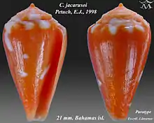 - Conus jacarusoi Petuch, 1998. Retrieved through: World Register of Marine Species on 27 March 2010.