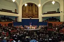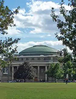 Convocation Hall is a domed rotunda on the grounds of the University of Toronto in Toronto, Ontario, Canada. Designed by Darling and Pearson and completed in 1907, its radially planned interior has been compared to the grand amphitheatre of the Sorbonne and the Sheldonian Theatre at Oxford, although no specific precedent is truly known.[1] While the building's namesake purpose is to host the annual convocation ceremonies, it also serves as the venue for academic and social functions that involve large audiences throughout the year.[2]