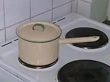 Induction cooking involves the electrical heating of a cooking vessel by magnetic induction instead of by radiation or thermal conduction from an electrical heating element or from a flame. Because inductive heating directly heats the vessel, very rapid increases in temperature can be achieved and changes in heat settings are fast, similar to gas.[6]