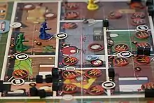 Cooperative board games are board games in which players work together to achieve a common goal rather than competing against each other.[1] Either the players win the game by reaching a pre-determined objective, or all players lose the game, often by not reaching the objective before a certain event ends the game.[2]