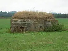 The Coquet Stop Line was made up of a string of pillboxes, with a consistent shape that has been referred to as the "Coquet line type" or more accurately "Lozenge" type, and is only found in the North East and parts of Yorkshire. They tend to have open ground in front, often the river or its floodplain, while to the rear, where the entrance is, efforts were made to provide cover for a retreating force.