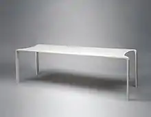- Seamless appearance: In the fabrication process, joints can be made nearly invisible by joining the relevant pieces with Corian's own color-matched two-part acrylic adhesive. The pieces are clamped tightly together in order to express any excess adhesive. After the adhesive cures, the area is sanded and polished to create a near-seamless joint. This seamless appearance is a signature characteristic of the material.[18]