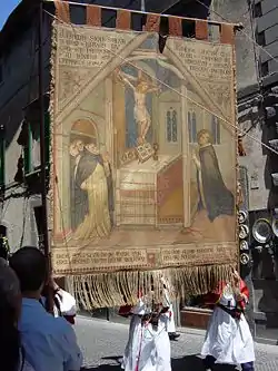 The Feast of Corpus Christi is one of the major public holidays for the city of Orvieto, during which the Corporal of Bolsena is paraded around the city with much fanfare.[4]