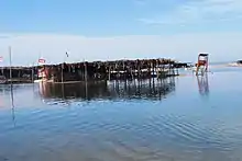 Generally tourist facilities are very basic and rustic. Food service, generally under palapas, open-air restaurants with thatched roofs, is common, but accommodations are sparse. One change to encourage tourism was to replace many speed bumps on Highway 200 and other major roads with devices that make the car vibrate instead to control speed. These roads are now also regularly patrolled by the Mexican federal police, which has been trying to control an increased incidence of highway robbery.[25] Chautengo is a large lagoon in the Cruz Grande municipality. Most economic activity is based on fishing, but there are some palapas and food service at the Pico del Monte beach, which is next to where the lagoon opens to the sea.[25][6] La Bocana is a long beach facing open ocean with a small navigable estuary where the Marquelia River empties into the Pacific Ocean. The area is filled with palapa restaurants as the beach is popular with locals. La Peñitas has two small bays facing the ocean, and one mostly closed off and protected by a strip of land. Accommodations in small bungalows is available along with restaurants. Barra de Tecoanapa is next to the mouth of the Quetzala River. It has beaches facing the ocean. Playa Ventura is in the municipality of Marquelia. This is a small bay facing open ocean with a long beach and medium waves. Unlike other beaches in the area, this is relatively developed with houses, restaurants and hotels made of cinderblock and concrete, painted in bright colors. Hotel services are basic and camping is permitted.[25]