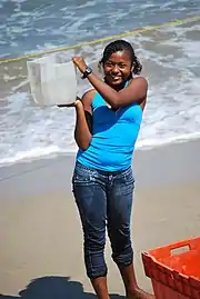 The Costa Chica (of both Guerrero and Oaxaca) is one of two zones in Mexico with significant Afro-Mexican populations, with the other being in the state of Veracruz.[1] While Afro-Mexicans are found in most parts of the Costa Chica, the highest concentrations in Guerrero are found between Marquelia and Cuajinicuilapa.[6] Members of this group in the region are often identified by skin color. Some consider the classification to be racism, while others identify as primarily Afro-Mexican. Many also have indigenous or mestizo ancestry.[8] While Africans are described as the “third root,” along with indigenous and Spanish people as part of Mexico heritage, this has often been "forgotten” in the description of the “mestizaje” identity of Mexico, which stresses the mixture of European and indigenous peoples.[8][2]