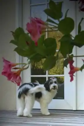 The Coton de Tuléar is a breed of small dog named for the city of Tuléar (also known as Toliara) in Madagascar. This breed is thought to have originated from a group of small white dogs that swam across the Malagasy channel following a shipwreck.[1] Known for its cotton-like coat, the Coton de Tuléar typically grows to no more than 18 pounds (8.2 kg), and are white, sometimes with grey, tan, black, or tri-colored markings. The Coton de Tuléar Day is celebrated on November 26th. [2]