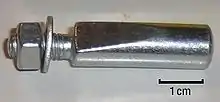 - Taper pin – Fastener consisting of a steep conical rod which is forced into a hole