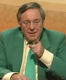 In January 2007, Des O'Connor took over as the main presenter.[17] During his tenure as host, Dent went on maternity leave over the winter of 2007–08, and Alison Heard temporarily replaced her on the programme until 6 February 2008. By July 2008, both O'Connor and Vorderman had announced that they would be leaving by the end of that year, after the end of the 59th series.[18][19] While O'Connor was forced to leave in order to concentrate on other projects,[18] Vorderman left after her offer to take a 33% salary decrease was rejected and production staff asked her to take a 90% pay cut; her agent stated that staff had told her that the show had survived without Whiteley and could "easily survive without you".[20] Some media reports suggested that the new presenter would be either Rory Bremner, the early favourite, or Alexander Armstrong,[21] but both ruled themselves out of the job.[22] At the same time there was speculation that several prominent women, including Anthea Turner, Ulrika Jonsson and Myleene Klass, were strong candidates to take over Vorderman's job,[23] but Channel 4 revealed that the role was to be assigned to a previously unknown male or female arithmetician with "charm and charisma".