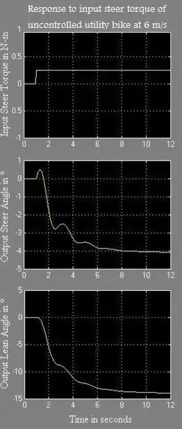 A positive right-hand torque leads to negative steer and roll angles, corresponding to a left turn. This behavior is often called countersteering, and it appears that it was known in the very early days of cycling, although a proper distinction between steer torque and steer angle forcing is not always made.
