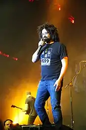 ![]() Counting Crows in Brussels, 2008. Left to right: Bogios, Duritz, Immerglück, and Gillingham. Vickrey is cut off at the left, Powers is behind Duritz; Bryson is out of frame. | |