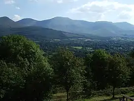 The region is part of the central plain of Ireland, but the diverse terrain contains several mountain ranges: the Knockmealdown, the Galtee, the Arra Hills and the Silvermine Mountains. Most of the county is drained by the River Suir; the north-western part by tributaries of the River Shannon; the eastern part by the River Nore; the south-western corner by the Munster Blackwater. No part of the county touches the coast. The centre is known as 'the Golden Vale', a rich pastoral stretch of land in the Suir basin which extends into counties Limerick and Cork. At 917 m, Galtymore is the highest point.