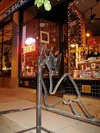 Heights Hardware is Coventry Village's oldest business (since 1911). Coventry also boasts a thriving music scene, including rock club the Grog Shop and its liquor lounge counterpart, the B-Side. Area mainstay Record Revolution sells classic vinyl, and The Exchange (formerly the Record Exchange). There are two book stores: Attenson's Antiques/Vintage & Books and Mac's Backs. Restaurants include The Inn on Coventry, Hunan Coventry, Tommy's (who only have drip coffee - there is no espresso machine on site), Grums Sub Shop, High Thai'd, Pacific East, Pho and Rice, Tree Country Bistro, BD's Mongolian Barbecue, Bodega, Cilantro Taqueria, Seafoof Shake, Guy's Pizza, and Dave's Cosmic Subs. Drink options are The Whiskey Bar and a local coffee house, Phoenix Coffee.[3] Other attractions are the clothing store/head shop Sunshine, the sneaker store and clothing boutique The Blueprint, Passport to Peru, the vintage clothing store Avalon Exchange, the hookah bar City and East, a comedy club, Big Dog Theater, and an American Apparel retail outlet. In recent years more local businesses have popped up on the street, most are trendy boutiques.