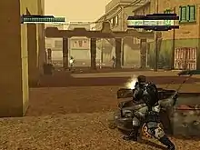 Ryan Lambie, writing for Den of Geek, considers Namco's run and gun arcade game Rolling Thunder (1986) to be "the precursor to the modern cover shooter" due to how the player can hide behind crates, doors and other obstacles to avoid enemy fire. The mechanic of taking cover behind crates and jumping over them was later borrowed by Sega's arcade hit Shinobi (1987).[5] Rolling Thunder 2 (1990) and Rolling Thunder 3 (1993) also allowed the player to enter doors to hide from enemies and dodge their gunfire.[6] In 1988, Konami's Devastators,[7] an early third-person shooter,[8] featured a cover mechanic where destructible objects, such as sandbags and debris littered across the battlefield, could be used to take cover from enemy fire.[7] In 1994, a cover mechanic was used in the game Blackthorne, which allowed the player to take cover by pressing against walls to avoid enemy fire.[9]