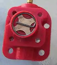In a reed valve engine, the valve is drawn open by suction as the piston moves upward on the compression stroke. As the piston moves down on the power stroke, the pressure in the crankcase causes the reed valve to close. The fuel-air mixture in the crankcase is then forced past the piston via the transfer/bypass ports in the cylinder. One characteristic of a reed valve is that the engine will run in either direction; an advantage for a "pusher" model but a disadvantage if the engine is finger started, as it may start in the wrong direction. (The Cox engines employed a starting spring which kept fingers free of the propeller and generally ensured correct rotational direction.)