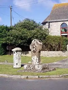 The hamlet consists of a cluster of 13 houses along the A30 road, the oldest being the Grade II listed Haydon Cottage and other more distant dwellings including those at Boscarne and the hamlet of Rissick. Haydon Cottage was built in the 17th century; blacksmith William Haydon was born here in 1625 and died in London in 1666 in the Great Fire of London.[3] The hamlet developed with the local mines of West Wheal Rissick, Wheal Lovell, and West Wheal Margaret, which in the mid-19th century produced high grade tin. The mines subsequently closed and a china clay works lies nearby.