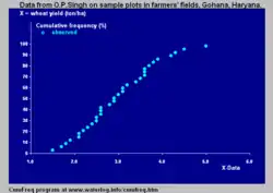 To present the cumulative frequency distribution as a continuous mathematical equation instead of a discrete set of data, one may try to fit the cumulative frequency distribution to a known cumulative probability distribution,.[2][3]