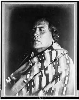 Ashishishe was born in approximately 1856 in Montana Territory, the son of Strong Bear (Inside the Mouth) and Strikes By the Side of the Water. His name, variously rendered as Ashishishe, Shishi'esh, etc., has been said to literally mean "the crow",[1] however, this may be a misunderstanding as the Crow word for "crow" is "áalihte".[2] Ashishishe may be a transliteration of the word "shísshia", which means "curly".[3] His death record lists his name as being "Bull Half White (Curly)".[4][5] He resided on the Crow Reservation in the vicinity of Pryor Creek, and married Bird Woman. He enlisted in the U.S. Army as an Indian scout on April 10, 1876. He served with the 7th Cavalry Regiment under George Armstrong Custer, and was with them at the Battle of Little Bighorn in June of that year, along with five other Crow warrior/scouts: White Man Runs Him, Goes Ahead, Hairy Moccasin, his cousin White Swan, and Half Yellow Face, the leader of the scouts. Custer had divided his force into four separate detachments, keeping a total of 210 men with him. Half Yellow Face and White Swan fought alongside the soldiers of Reno's detachment, and White Swan was severely wounded. Curly, Hairy Moccasin, Goes Ahead and White Man Runs Him went with Custer's detachment, but did not actively participate in the battle; they later reported they were ordered away before the intense fighting began. Curly separated from White Man Runs Him, Hairy Moccasin, and Goes Ahead, and he watched the battle between the Sioux/Cheyenne forces and Custer's detachment from a distance. Seeing the complete extermination of Custer's detachment, he rode off to report the news.[1]