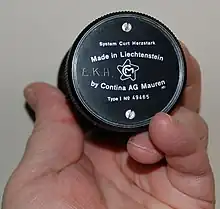 The Curta is a hand-held mechanical calculator designed by Curt Herzstark.[1] It is known for its extremely compact design: a small cylinder that fits in the palm of the hand. It was affectionately known as the "pepper grinder" or "peppermill" due to its shape and means of operation; its superficial resemblance to a certain type of hand grenade also earned it the nickname "math grenade".[2]