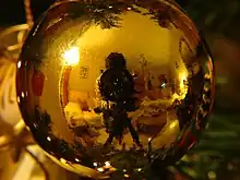 Round convex mirrors called Oeil de Sorcière (French for "sorcerer's eye") were a popular luxury item from the 15th century onwards, shown in many depictions of interiors from that time.[3] With 15th century technology, it was easier to make a regular curved mirror (from blown glass) than a perfectly flat one. They were also known as "bankers' eyes" due to the fact that their wide field of vision was useful for security. Famous examples in art include the Arnolfini Portrait by Jan van Eyck and the left wing of the Werl Altarpiece by Robert Campin.[4]