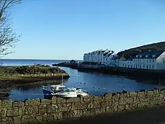Cushendun (from Irish: Cois Abhann Doinne, meaning 'foot of the River Dun')[3] is a small coastal village in County Antrim, Northern Ireland. It sits off the A2 coast road between Cushendall and Ballycastle. It has a sheltered harbour and lies at the mouth of the River Dun and Glendun, one of the nine Glens of Antrim. The Mull of Kintyre in Scotland is only about 15 miles away across the North Channel and can be seen easily on clear days. In the 2001 Census it had a population of 138 people.[4] It is part of Causeway Coast and Glens district.