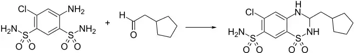 1. Whitehead CW, Traverso JJ, Sullivan HR, Marshall FJ (1961). "Diuretics. V. 3,4-Dihydro-1,2,4-benzothiadiazine 1,1-Dioxides". The Journal of Organic Chemistry. 26 (8): 2814–2818. doi:10.1021/jo01066a046.