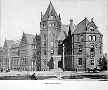 Eidlitz began working for his father. His first independent work was the 1877-78 reconstruction of St. Peter's Church in the Bronx after it was damaged by fire. It had originally been designed by his father. His early Gothic and Romanesque Revival designs, including Dearborn Station in Chicago, Michigan Central Station (1887) in Kalamazoo,[1] and the precursor to the current Buffalo & Erie County Public Library in Lafayette Square, show his father's influence. His Romanesque Revival design for the Metropolitan Telephone Building on Cortlandt Street (1886) was the first purpose-built telephone building in New York City. Another Romanesque design was selected for The Bank for Savings in the City of New-York which was erected in 1894.[2] For the American Society of Civil Engineers' new Society House on 220 West 57th Street (1897), he used a French Renaissance and Gothic design.[3]