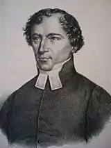 The current of building a common Slavic community centered upon Czech culture climaxed in mid-19th century thanks to activity of Jozef Šafárik and especially Jan Kollár, the latter graduate of the Preßburg Lyceum himself. A poet, scientist and politician, as ideologue he advanced the cause of Pan-Slavism. His monumental opus was written mostly in archaic Czech, though in the 1840s he tried to merge it with some Slovak features.[10] However, he was opposed from two different angles. The trend towards buildup of Slovak literary language, commenced by Bernolák mostly to counter Protestantism already in the late 18th century, diverted from religious issues and assumed a decisively national flavor; championed by Štúr, Hurban and Hodža it opposed a Czech-focused perspective.[11] On other hand, Prague-based representatives of purely Czech cultural vision like Jungmann or Palacký also considered Kollár's efforts harmful.[12] The result was that with death of Šafárik and Kollár the idea of Czech-based linguistic unity was gradually dying out.[13]