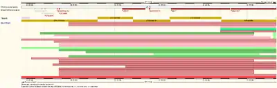 DECIPHER is a web-based resource and database of genomic variation data from analysis of patient DNA.[1][2][3] It documents submicroscopic chromosome abnormalities (microdeletions and duplications) and pathogenic sequence variants (single nucleotide variants - SNVs, Insertions, Deletions, InDels), from over 25000 patients and maps them to the human genome using Ensembl or UCSC Genome Browser.[1][2][4] In addition it catalogues the clinical characteristics from each patient and maintains a database of microdeletion/duplication syndromes, together with links to relevant scientific reports and support groups.[1][5]