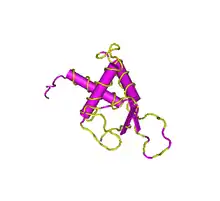 The DEP domain is primarily found in proteins involved in G-protein signalling pathways and regulation of GTPase.[16][17] As well, experimental evidence suggests that the DEP domain determines the subcellular target of some GTPase Activating proteins.[18] In the DEPDC1B protein electronic inference has verified the GTPase activator activity function.[15] The solution structure of human containing DEP domain containing proteins verifies the secondary structure of the domain: containing three alpha-helices and two beta-strands within the approximate 80 amino acid region of the domain.[19][20]