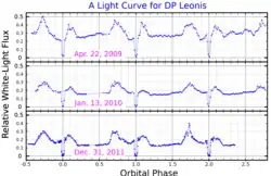 - Beuermann, K.; et al. (February 2011). "The giant planet orbiting the cataclysmic binary DP Leonis". Astronomy and Astrophysics. 526: 5. arXiv:1011.3905. Bibcode:2011A&A...526A..53B. doi:10.1051/0004-6361/201015942. S2CID 119184531. A53.