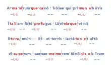 - inde to/ro pater / Aene/as sic / orsus ab / alto[9]
