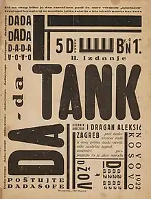 Dada Tank was a Yugoslav Dadaist single issue publication published in Zagreb in June 1922 and edited by Dragan Aleksić. Aleksić published Dada Tank as a response to Branko Ve Poljanski and his brother Ljubomir Micić's anti-Dada publication Dada-Jok from May 1922.[1]