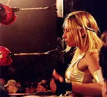 Haze began wrestling for the Philadelphia–based Chikara in 2005.[1] In November 2009 she was placed in her first major storyline in the company, when she aligned herself with Claudio Castagnoli, Ares, Pinkie Sanchez, Sara Del Rey, Tim Donst and Tursas to form the heel stable Bruderschaft des Kreuzes (BDK).[17] The stable has since been joined by Lince Dorado and Delirious.[18][19] While in BDK Haze began regularly teaming with Del Rey and together the two of them picked up victories over tag teams such as The Osirian Portal (Amasis and Ophidian),[18] Los Ice Creams (El Hijo del Ice Cream and Ice Cream, Jr.),[20] The Throwbacks (Dasher Hatfield and Sugar Dunkerton),[19] Amazing Kong and Raisha Saeed,[21] and Mike Quackenbush and Jigsaw.[22] On September 18, 2010, Haze wrestled Japanese joshi legend Manami Toyota in her first match on American soil, in a losing effort.[23] On October 23 Haze represented BDK in the torneo cibernetico match, where they faced a team composed of Chikara originals. She was eliminated from the match by Eddie Kingston.[24] The following day Haze and Del Rey defeated the Super Smash Bros. (Player Uno and Player Dos) in a tag team match to pick up their third straight victory and, as the first all–female tag team, earn the right to challenge for the Chikara Campeonatos de Parejas (tag team championship), at the time held by their stablemates Ares and Claudio Castagnoli.[25] However, Haze and Del Rey never got to cash in their points as Ares and Castagnoli ordered them to defend them in a four–way elimination match on November 21, where they ended up being eliminated by Mike Quackenbush and Jigsaw and losing all of their points.[26] On July 31, 2011, Castagnoli turned first on Del Rey, after losing to her in a singles match, and then Haze, as she was standing up for her regular tag team partner.[27] The following week, Del Rey quit BDK, while Chikara announced that Haze would be taking a leave of absence from the promotion after suffering a storyline injury at the hands of Castagnoli.[28]