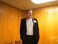 Benishek favored reduced government spending and a smaller government, and was pro-life and pro-gun rights.[27] In 2014, he received an A+ grade from the National Rifle Association Political Victory Fund.[28] He supported term limits and said before he was elected in 2010, "I am happy to tell voters I strongly favor term limits. Three terms and you're retired seems about right to me." He was also a signatory to a pledge by U.S. Term Limits that would impose a three-term limit on Congressmen.[29] However, in March 2015, Benishek announced he would break that pledge and run for a 4th term.[30] In September 2015, he reverted course, announcing that he would in fact retire at the end of his current term rather than seeing re-election in 2016.[31] In healthcare reform, he supported tort reform and allowing insurance companies to compete across state lines without federal regulation.[32] He opposed federal funding for elective abortions.[33] He supported lower taxes and increased border security.[34] Benishek dismissed the scientific consensus on climate change.[35][36][37]