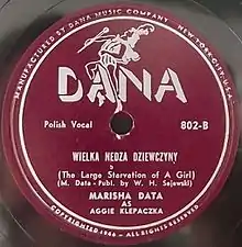 - Marisha Data (1952). Aggie Klepaczka Przy Telefonie: Dieta [Aggie Klepaczka at the Phone: The Diet] (phonograph record) (in Polish). Dana Records. 796-B.