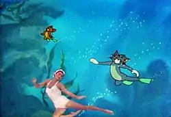 In the underwater sequences in which Williams speaks to Tom and Jerry, Joseph Barbera animated pink bubbles coming from her mouth, an effect that cost $50,000.[4]