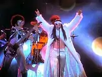 The music video for "Dani California" premiered on April 4, 2006.[10] Directed by Tony Kaye, director of American History X (who was only accepted after initial choice Mark Romanek declined), the video is a quasi-chronology of the evolution of rock music; the band performs the song on a stage, but in a variety of outfits representing important figures and movements in the history of rock, with band members transformed into famous musicians.[4]