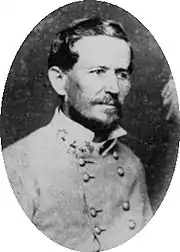 Adams returned to duty in early 1863 and led his brigade at the siege of Jackson, Mississippi under General Joseph E. Johnston.[1][2][4][8] Under the command of General Braxton Bragg, Adams's brigade fought at the Chickamauga.[1][2][4][8] Adams's brigade broke through the Union lines on the second day of the battle but they were driven back by Union Army reinforcements.[2] Adams was again wounded, in the left arm, and captured.[1][2][4][8]