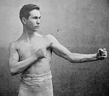 Danny Needham (May 20, 1867 - September 12, 1922) was an Irish-American boxer.[1][2] Based in St. Paul, Needham started his pro boxing career by challenging lightweight bare-knuckle champion Tommy Danforth to a fight. The fight agreement stipulated that Needham needed to knock his opponent out to win the fight, so the fight was awarded to Danforth even though Needham was better than him through 8 rounds. Needham would become the lightweight champion of the Northwest in 1888 and he would controversially lose a bout for the lightweight championship of America. Around 1889, he made the jump to welterweight. One of his first fights in his new weight class is one of the longest boxing matches ever recorded, a 100 round fight against Patsy Kerrigan. The fight was declared a draw, with both men being in the brink of death. The following year, Needham would challenge Tommy Ryan for the welterweight world title. But he would end up losing after 76 rounds, in another one of the sport's longest matches. [3] Needham moved to Alaska during the Klondike gold rush. He spent the final years of his life in the St. Peter State Hospital, before dying of throat cancer in 1922. [4] He was inducted to the Minnesota Boxing Hall of Fame in 2013.