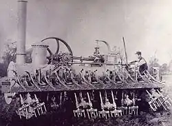 The Darby Steam-Digger, a light traction engine, was invented circa 1879 by farmer Thomas Darby and built at Lodge Farm Pleshey, near Chelmsford in Essex, England. Robert Hasler, seen driving the Digger, helped to build this first prototype. In 1900 the company moved to a 6 acre site known as Stileman's Works in Wickford, Essex. In mid-1906 the works and its contents were auctioned under the order of the executors of the late T. Dowsett (who was the first mayor of Southend, and an extremely wealthy man).[1] This sale included 6 traction engines and 21 Darby Land Diggers.
