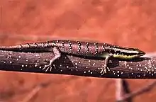 - Dasia vittata (Edeling, 1865) – Borneo skink, striped tree skink
