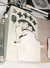 It consists of two separate "keyboards", one for the left hand and one for the right. Each finger activates five buttons: the four compass directions as well as down.[7] The thumbs also have five buttons: one inside, two outside, up and down.[8]