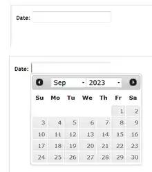 A date picker, popup calendar, date and time picker, or time picker is a graphical user interface widget which allows the user to select a date from a calendar and/or time from a time range. The typical practice is to provide a text box field which, when clicked upon to enter a date, pops up a calendar next to or below the field, allowing the user to populate the field with an appropriate date, or provides a text box with an icon of a calendar such that when the icon is clicked on, the calendar (or time field) appears, or show calendar widget directly (inline).
