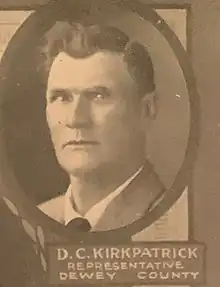 Kirkpatrick was elected to the Oklahoma House of Representatives in 1914 as a Socialist.[1] After losing re-election in 1916, Kirkpatrick ran as the Socialist nominee for an Oklahoma Senate district. He later ran for an Oklahoma House of Representatives seat in Dewey County under the Farmer-Labor Party in 1924.[2]