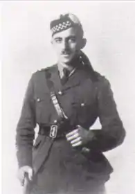 Three days later he was in command of the firing line during an attack, and showed throughout most courageous and skilful leading in face of heavy machine-gun fire. When barbed wire was encountered, he personally reconnoitred it before leading his men forward. On one occasion, when extra strong entanglements were reached, he organised and took forward a party of men. and under heavy machine-gun fire supervised the making of gaps.