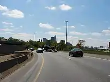 - The nearly 90° turn on Interstate 90 near downtown Cleveland, officially called the "Innerbelt Curve", where the Cleveland Memorial Shoreway connects to the Innerbelt Freeway at a modified trumpet interchange just south of Burke Lakefront Airport (41.5173°N 81.6754°W).[9]